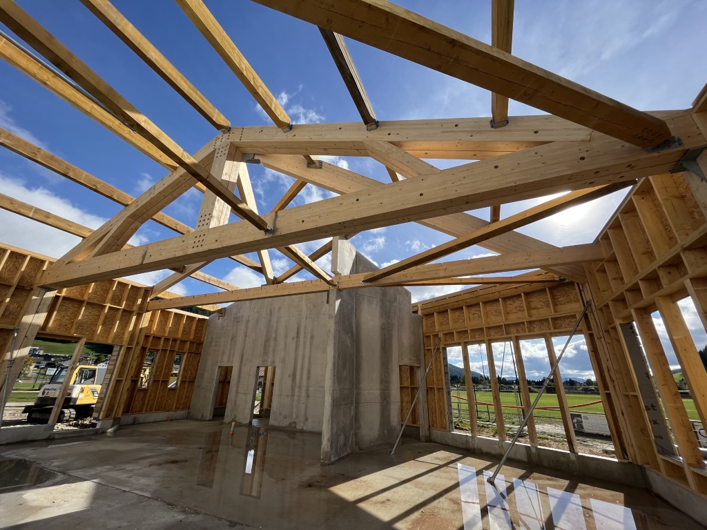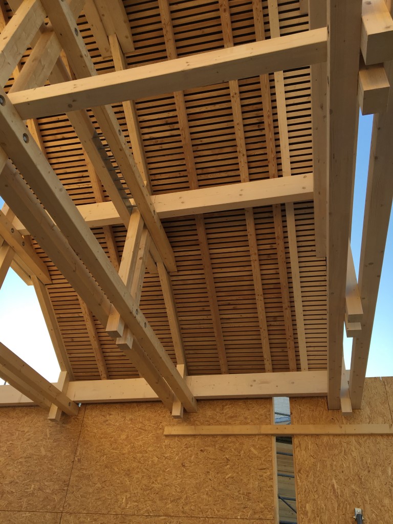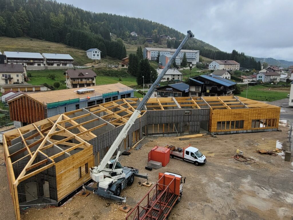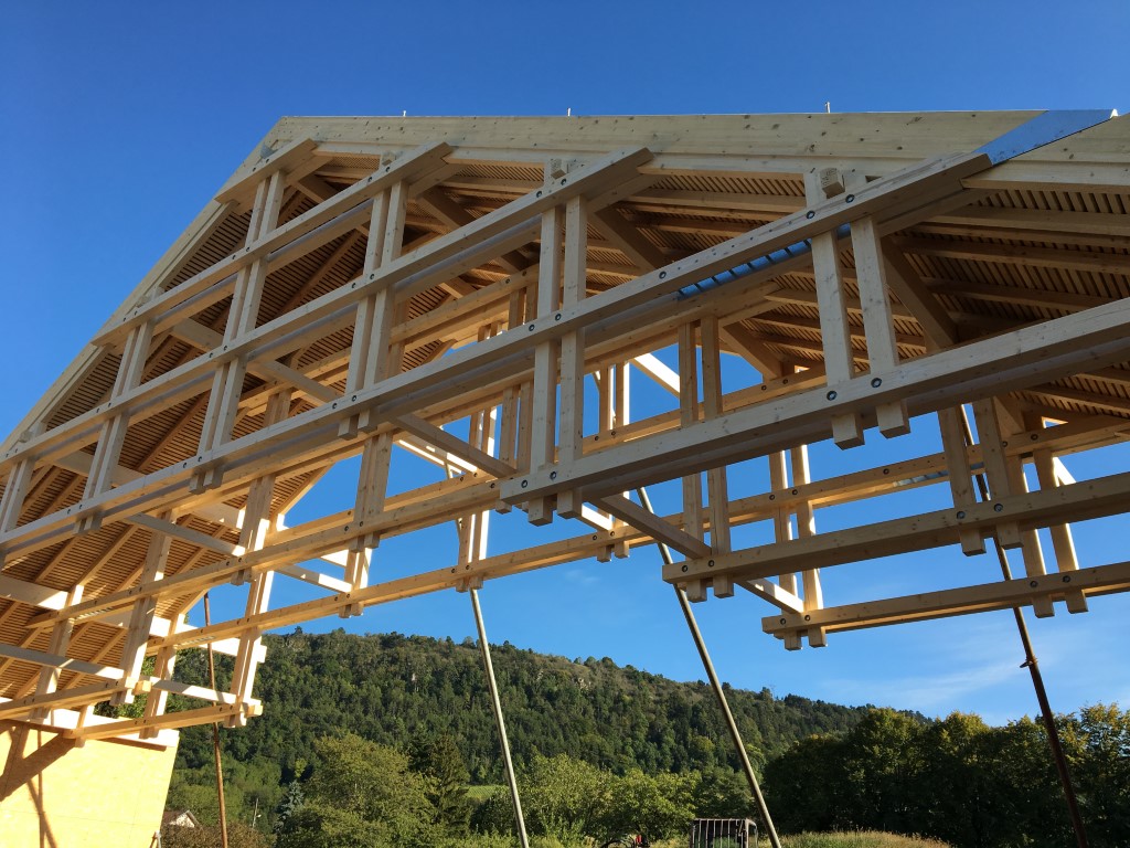 – Charpente bois massif et contre collée en Epicéa 150m3 / Surface 1600 m2